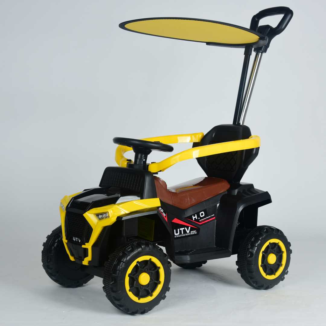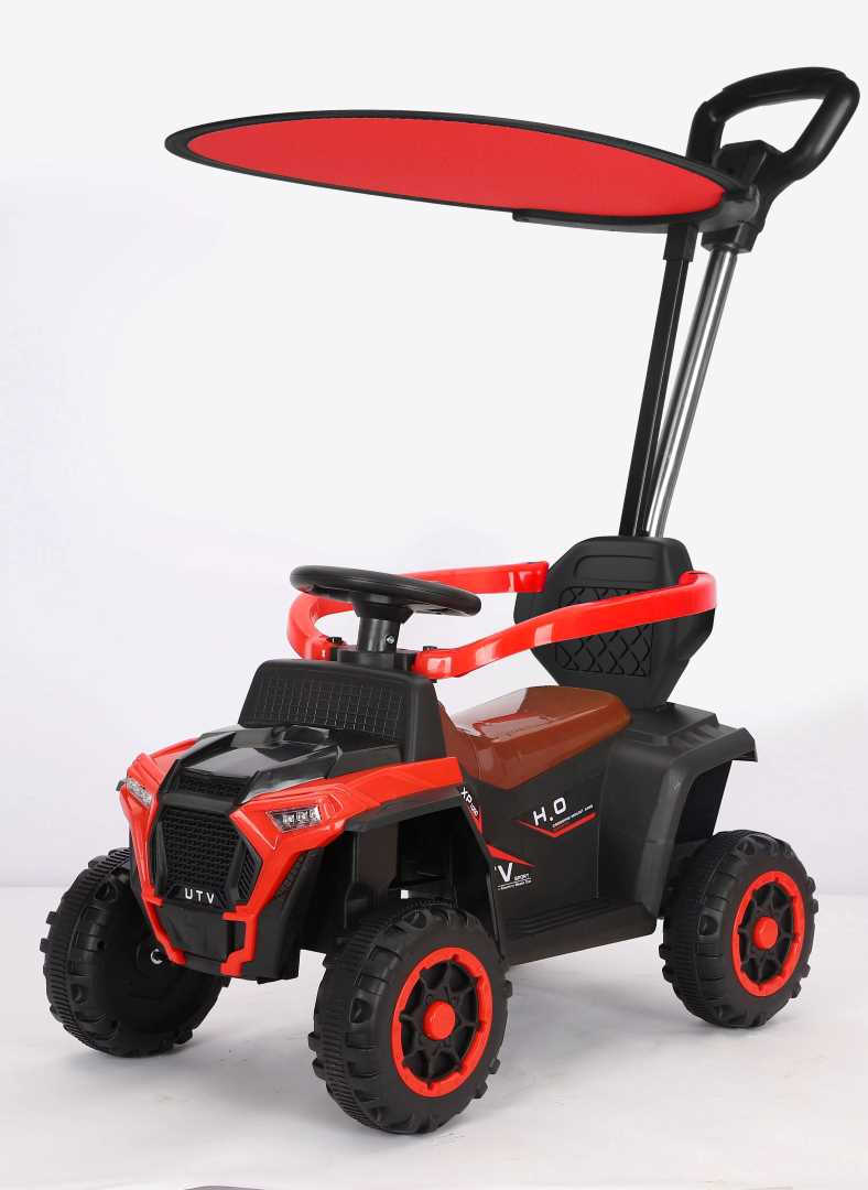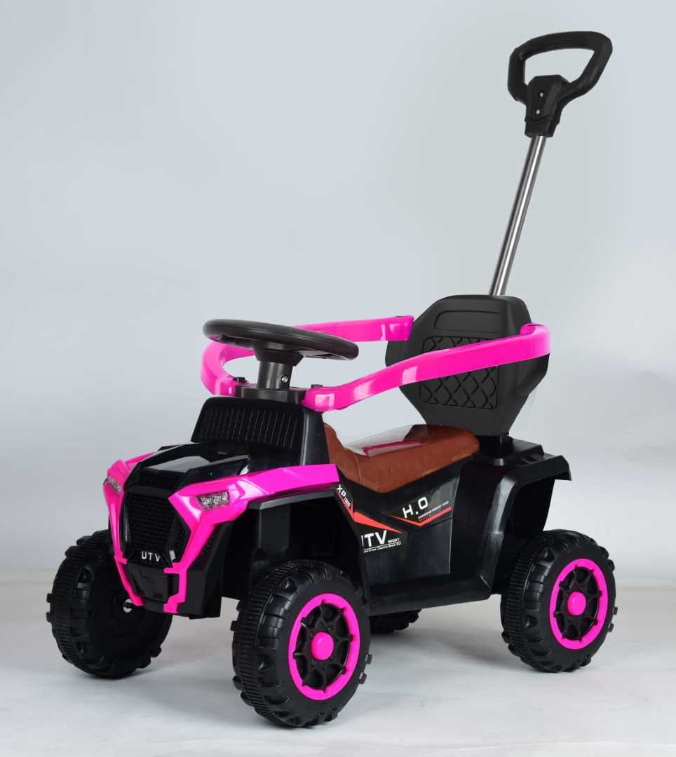 FIRST STEP 4-WHEEL RIDEON PUSHCAR WITH HANDLE Master playtime with the FIRST STEP 4-Wheel Pushcar, where parental control meets child independence. The push handle with steering control lets you guide your child safely while the pedal mechanism encourages active leg movement and coordination development. A protective guardrail and premium leather seat ensure comfort during extended rides, while integrated lights and music create an engaging entertainment experience. Bluetooth-enabled USB connectivity streams your child's favorite songs, transforming every outing into a joyful adventure. This comprehensive ride-on combines safety features, comfort upgrades, and entertainment technology—the ultimate choice for parents seeking a versatile pushcar that supports growth and creates lasting memories.